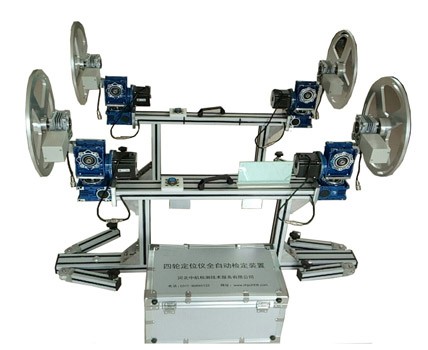 通用便攜式四輪定位儀全自動檢定裝置在測量原理、結(jié)構(gòu)設(shè)計等方面進行了大膽創(chuàng)新,基于模塊化設(shè)計理念,以為采用了先進的單軸三維轉(zhuǎn)角驅(qū)動機構(gòu)、激光瞄準(zhǔn)定位、角度細(xì)分以及計算機自動控制等先進技術(shù),使得該裝置在計算機的控制下,能在現(xiàn)場模擬各種不同類型的汽車車輪的定位參數(shù),除了能準(zhǔn)確檢測傳感器的角度誤差外;與之配套零位校準(zhǔn)器還能校準(zhǔn)傳感器的零位誤差。它具有:通用性強、測量數(shù)據(jù)準(zhǔn)確、重復(fù)性好、自動化程度高、安裝調(diào)整方便和容易搬運等特點,可快速檢定各種類型(Laser、PSD、CCD、3D 老式拉線、 瑞士卡爪)四輪定位儀,由于該裝置的軸距在較大的范圍內(nèi)可任意調(diào)整,所以也可檢定大車四輪定位儀和非接觸四輪定位儀。