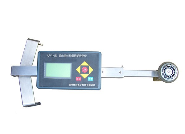 AFY-D型轉(zhuǎn)向盤轉(zhuǎn)動量、扭矩檢測儀由淄博祥安電子科技有限公司自主研制開發(fā),儀器采用了高性能的單片機(jī)和具有漢字顯示功能的液晶顯示器,因此不但增加了儀器的功能,且大大方便了儀器的操作、使用并提高了測量精度。用于測量方向盤的自由轉(zhuǎn)角,原地轉(zhuǎn)向力,方向盤轉(zhuǎn)矩、轉(zhuǎn)角和其他靜態(tài)、動態(tài)參數(shù),并且可將測試結(jié)果打印,存儲或傳送至電腦上位機(jī)。由于本適用于汽車、拖拉機(jī)、工程機(jī)械及其它方向盤式車輛的轉(zhuǎn)向性能試驗(yàn)。